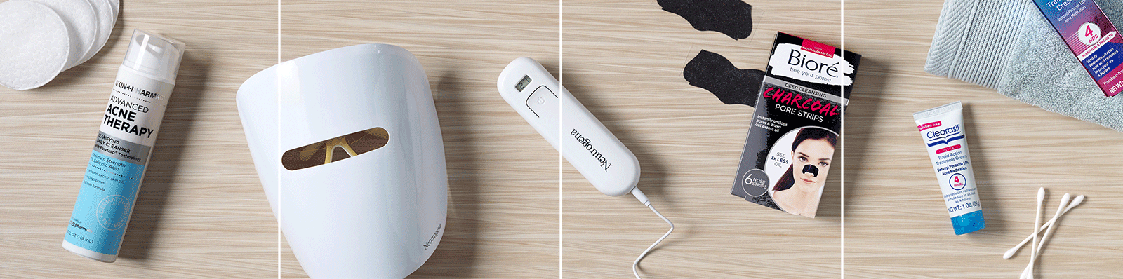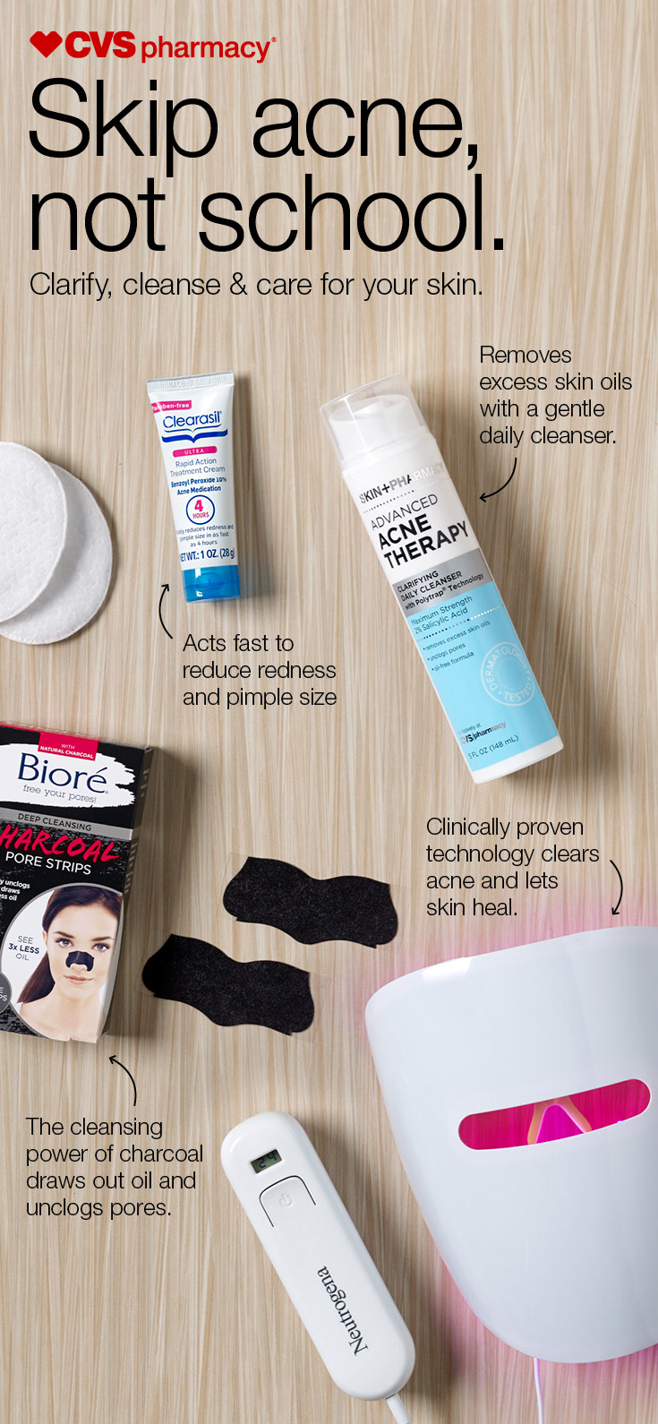 Facebook carousel and Pinterest post highlighting the latest Acne treatments for back to school.